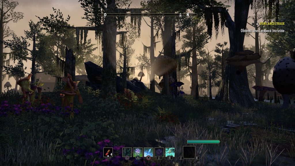 Une autre grosse nouveauté marquante de cette extension est la nouvelle classe jouable. Ainsi, les joueurs peuvent maintenant créer un Gardien (rien à voir avec Destiny) en tout début de partie. Notre avatar sera alors en harmonie avec la nature puisque nous pourrons invoquer un ours redoutable pour nous prêter main forte, envoyer des nuées d’insectes sur nos ennemis ou encore utiliser les pouvoirs des plantes pour nous soigner. Tous ces pouvoirs peuvent être ajoutés dans notre barre de compétences afin d’êtres utilisés facilement en pressant un bouton. Très franchement, cette classe est vraiment intéressante et aisée à prendre en main. Les capacités peuvent être améliorées au fil de l’aventure et les variantes de chaque pouvoir ajoutent de l’intérêt sur le long terme. Si le gameplay ne change pas beaucoup puisqu’il faut affronter nos adversaires en utilisant ses habiletés tout en tapant avec nos armes, cet ajout permet néanmoins de pousser les joueurs habitués à The Elder Scrolls Online à créer un nouveau personnage. Ensuite, libre à nous d’arpenter Vvardenfell pour y affronter un bestiaire varié à base de créatures Dwemer, arachnides ou soldats très énervés. C’est bien simple, hors des sentiers battus, il n’est pas rare de se faire agresser tous les vingt mètres par une bestiole ou un PNJ peu commode. Heureusement, des montures sont disponibles afin d’accélérer le pas.