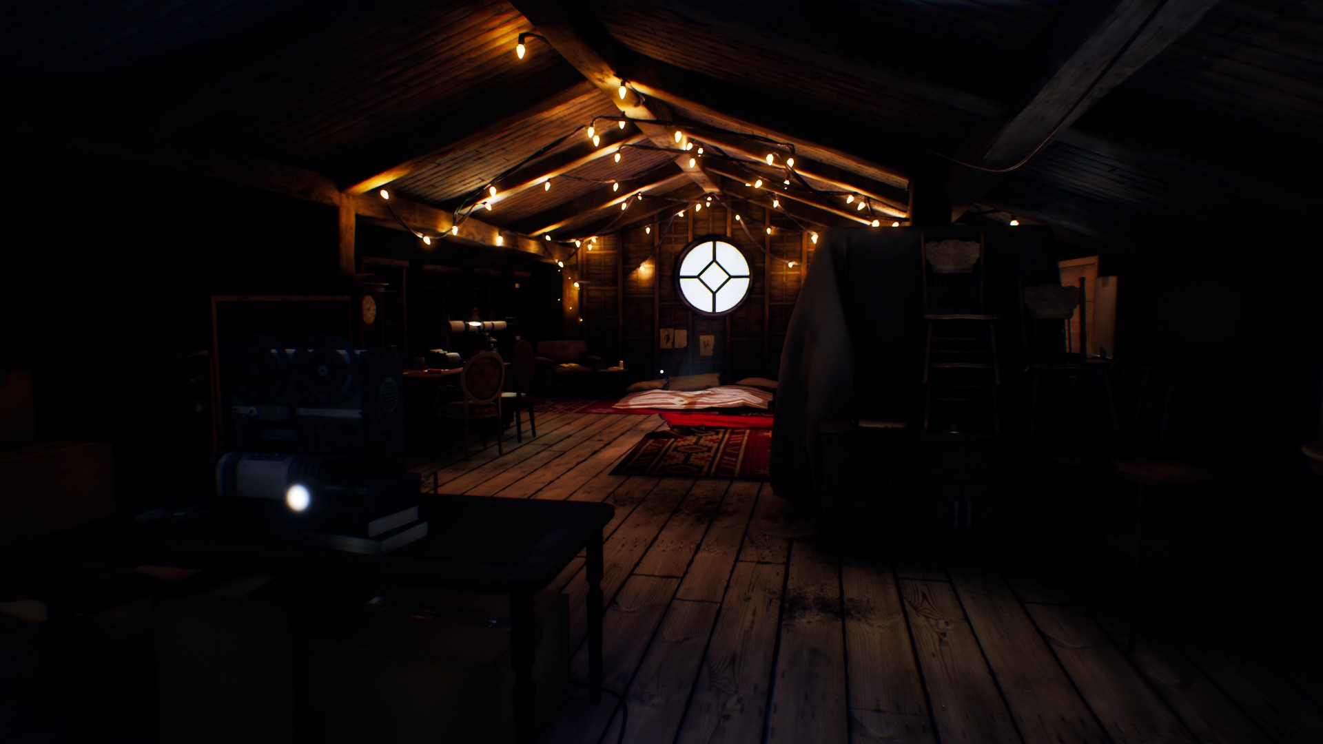 Pourtant, on ne peut pas lui retirer, le titre bénéficie d’une mise en scène extrêmement soignée, et ce dès le début. Le travail réalisé sur l’ambiance est percutant et contribue pour beaucoup à nous accrocher à ce récit malgré les défauts soulignés plus haut. Tantôt poétique et mélancolique, tantôt apaisant, tantôt angoissant, le Timberline Mountain Hotel nous fait passer par une série de sentiments divers et variés éminemment renforcés par la puissance de la bande-son et plus généralement du sound design, excellentissime à souhait. On vous recommande plus que chaudement de découvrir cette aventure au casque car celle-ci bénéficie d’un système de son binaural. Ainsi, chaque petit grincement, bruit de vent, craquement ou autre bruit étrange ou inquiétant (et il y en a beaucoup) se fera ressentir comme si vous étiez personnellement en train de fouler le sol de la bâtisse. C’est une certitude, ils ne pouvaient pas opter pour un meilleur choix en termes d’immersion.