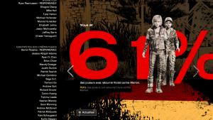 Pour finir, un petit mot sur le gameplay s’impose malgré le fait qu’il reste pratiquement identique à celui intégré dans les précédentes saisons. Comme vous le savez, le jeu est basé essentiellement sur des QTE, qui demandent plus ou moins de réactivité et de rapidité en fonction des situations narrées. On remarque tout de même que, dans cette saison, les QTE arborent un côté un peu plus design et s’incorporent très bien à l’écran (image ci-dessous). Cela a tendance à favoriser l’aspect dynamique de certaines scènes. Comme toujours, les joueurs auront également à faire des choix, dans un temps imparti. Bien souvent, ils auront le choix entre 4 possibilités, dont l’une est affiliée au silence. Dans d’autres cas, vous devrez faire un choix pour telle ou telle approche, se résumant autour de deux possibilités. Evidemment, à chaque fin d’épisode, vous aurez le droit à un récapitulatif de vos choix et le statut de vos relations avec les autres personnages.