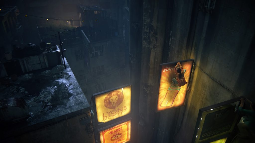 C’est une habitude avec la série mais Uncharted: The Lost Legacy est absolument somptueux (même sur une PS4 classique). Les environnements sont vastes, détaillés, colorés et nous les arpentons avec bonheur en profitant d’une fluidité optimale. La claque technique est bien là, une fois encore ! Mention spéciale aux effets lumineux qui font vraiment dans le réalisme et la modélisation des personnages est également bluffante. Durant les cinématiques les émotions se véhiculent sans mal grâce aux animations faciales impeccables. Rien n’a été laissé au hasard et le tout est accompagné par un doublage français de qualité ainsi qu’une bande originale magistrale portée par de nouvelles compositions et d’autres plus anciennes qui viennent d’Uncharted 4: A Thief’s End. Tous ces éléments servent unr mise en scène hollywoodienne à base d’explosions, d’effondrements, de chutes et autres cascades spectaculaires. Chloe n’a rien à envier à Nathan Drake et donne même l’impression d’être une sorte de réincarnation au féminin du célèbre aventurier.