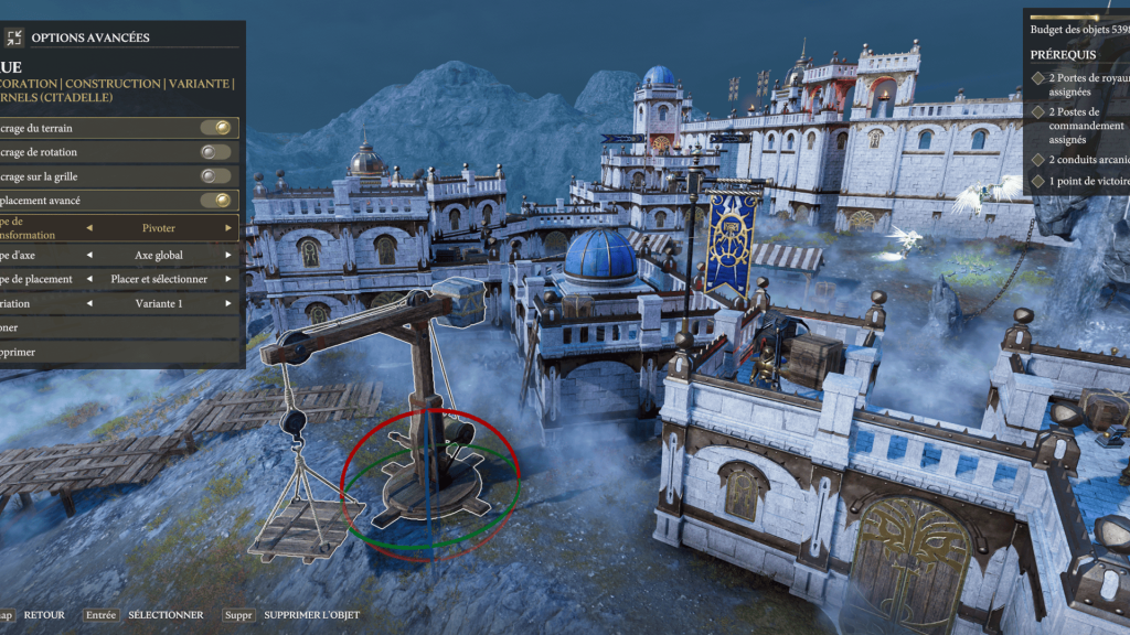 Là où on sera déçu de la customisation des armées, c’est du côté de la création de carte et de son mode édition que l’on prendra une réelle claque dans la figure. Ici, place au tour de force du titre, proposant de nombreuses possibilités de création allant de la petite carte prédéfinit à la création et à l’édition totales d’un grand champ de bataille. Et pour couronner le tout, les outils offerts pour concevoir votre monde sont d’une extrême satisfaction. On retrouvera la possibilité de modeler le terrain à notre guise, ajoutant à la main des montagnes, des gouffres, des mers et des rivières ainsi que de la végétation. Une fois le terrain mis en place, il est temps d’y déposer des décors ainsi que des objets en tout genre. Là encore, la simplification est de mise pour permettre à toutes et tous de créer un champ de bataille unique, encrant les éléments directement au sol et ou sur une grille imaginaire. Mais si vous êtes un expert, un mode vous sera alors débloqué vous offrant des outils que l’on retrouve dans des logiciels de 3D comme Maya ou encore Blender, le fameux Gizmo avec son déplacement en X/Y/Z et son système de rotation similaire sera alors de la partie. Même si l’on notera des raccourcis manquants comme la possibilité de se focus sur un objet lorsque la caméra est un peu éloignée ou encore une touche permettant ou non d’activer le magnétisme : les créateurs reconnaîtront le principe. Le fait de proposer autant de paramètres est quelque chose de fort appréciable. Du côté des personnages, il sera possible de créer de réelles petites scénettes en plaçant, comme bon nous semble, ces derniers en fonction de pose que l’on retrouve dans les animations du jeu, le tout en temps réel et sans souci de performance. Toutefois, ne voyez pas trop grand non plus, une limite d’objet vous sera imposée. Mais rassurez-vous, sur ce point, vous aurez l’occasion de créer de magnifiques décors avant de pouvoir atteindre la limite des 10 000 objets plaçables sur votre carte.