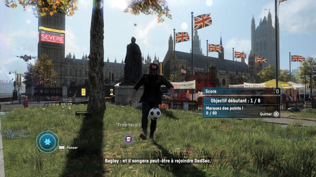 Mais ce n’est pas la seule refonte d’Ubisoft sur les mécanismes de jeu de la licence, comme nous avons pu le dire précédemment. Ayant déjà mentionné la nouvelle formule pour les combats au corps-à-corps dans notre dernière preview (à retrouver à cette adresse), suite à une session sur PC, nous ne reviendrons pas plus en détails dessus mais autant vous dire que votre fidèle servante partage l’avis de Matthieu sur ce point : c’est beaucoup plus agréable manette en mains et rend les affrontements un tantinet plus réaliste. Pour l’heure, on notera également que tous les mécanismes de jeu tiers, comme les activités annexes, se veulent davantage intéressants et proposent du challenge. On pense notamment aux fléchettes ou encore à la séance de jongles avec un ballon de football, permettant de se détendre un tantinet dans ce Londres oppressant et surtout de gagner de l’argent rapidement. C’est toujours aussi fun, oui ! Ils ont également ajouté une autre activité : le service de livraison Parcel Fox. En effet, aux quatre coins de la carte, nos protagonistes pourront découvrir des casiers oranges de l’entreprise : le but étant de livrer le colis intact et ce dans un temps imparti. C’est sympa et ça ajoute du contenu sans trop forcer. Bien entendu, Watch Dogs Legion adopte toujours ce style GTA-like puisqu’il est possible d’habiller son et ses personnages en achetant des vêtements dans diverses boutiques, et explorer à foison le monde. Et là encore, toutes les boutiques ne se ressemblent pas nécessairement et vous ne trouverez pas des vêtements huppés dans les quartiers les plus malfamés de Londres. De quoi personnaliser les Londoniens ayant rejoint vos rangs tout en laissant intacte leur identité de base.