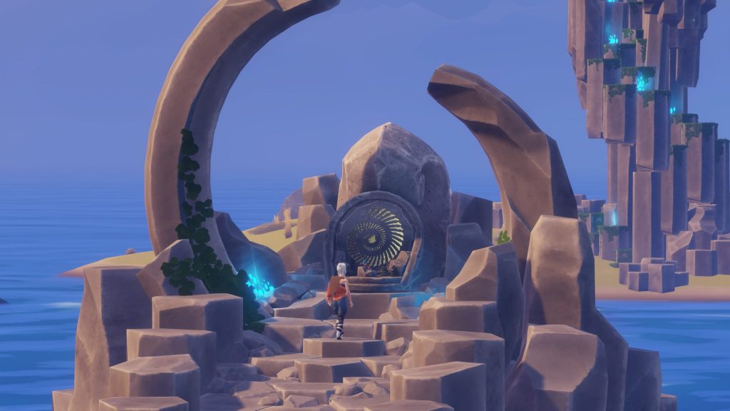Visuellement, le titre se veut assez proche du dernier Zelda, oui. Mais on pourrait également mentionner RiME qui est dans la même veine. Pour le bestiaire, on a tout de suite pensé aux créatures de Little Town Hero de part leur gabarit et allure générale. En soi, c’est relativement plaisant et la palette des couleurs utilisée est vraiment sympathique à l’écran, mais là encore les développeurs n’inventent rien. Ce qui nous a semblé beaucoup plus intéressant fut le changement total d’atmosphère lorsque nous sommes en mer et que nous nous approchons d’îles atypiques, à l’image par exemple de celle rocheuse qu’il faut rallier à la fin du premier chapitre. Par ailleurs, les autels profitent d’une ambiance tout aussi différente : dès que l’on s’approche de la clé nautile, la bande sonore change du tout au tout. Elle passe ainsi de musiques mélodieuses et douces à des partitions aux notes graves et longues (elles nous ont fait penser à celle d’Hellblade Senua’s Sacrifice dans certains cas). On notera tout de même que les morceaux doux sont joués au piano, et ça c’est vraiment plaisant à l’oreille, surtout lorsque l’on navigue tranquillement sur les flots. En dehors, des autels et îles avec le réceptacle final, il y a une certaine redondance visuelle îles après îles. C’est dommage surtout que les jeux de lumière parviennent à distiller une certaine beauté au titre.