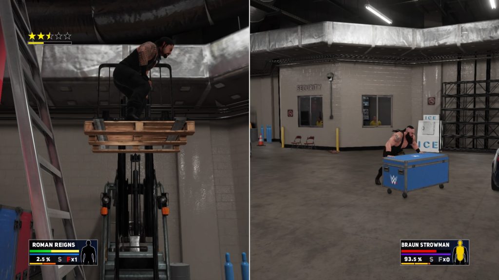 Le mot d’ordre de cet opus, c’est la création. Ainsi, le mode « Mon Joueur » nous permet de personnaliser notre avatar que nous contrôlerons ensuite dans deux domaines bien distincts. L’éventail de choix est plus large que d’habitude et, en plus de toutes les options cosmétiques, il est possible de sélectionner une classe qui orientera les capacités de notre catcheur. Que ce soit un spécialiste des cascades aériennes, un bagarreur ou bien un pro de la technique, il y a vraiment de tout. Notre superstar possède également des attributs et il faut ensuite dépenser des points (obtenus après chaque match via un système de notation de notre prestation sur le ring) pour améliorer nos capacités. Bref, vous l’aurez compris, cette customisation est vraiment un point fort dans WWE 2K18. Notre avatar peut ensuite être utilisé dans un mode Carrière étoffé par rapport à l’année dernière. Nous commençons notre parcours au plus bas de l’échelle et il faudra faire ses preuves à la NXT avant de pouvoir débarquer dans le roster principal. Sauf que cette fois, il ne suffit plus d’enchaîner les combats. Le jeu nous permet de nous balader également dans les coulisses afin de discuter avec les producteurs et les autres superstars. Cet aspect nous invite à forger des alliances et orienter notre personnage au niveau moral. Évidemment, il ne faut pas non plus s’attendre à beaucoup de profondeur durant ces discussions. Déjà parce que le but est d’éclater tout le monde, mais en plus, aucune voix n’est doublée et il faut donc se contenter des sous-titres. Quoiqu’il en soit, se faire une place à la WWE n’a jamais été aussi immersif, même s’il manque sans doute un petit quelque chose pour parfaire cette immersion. Explorer les backstages n’a rien de très passionnant et au final, tout ou presque se règle sur le ring. Notons aussi la possibilité d’obtenir des petites quêtes (ou plutôt des objectifs) secondaires afin de gagner des points supplémentaires.