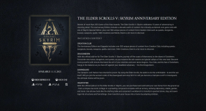 Alors que le jeu s’apprête à souffler sa 10e bougie cette année, The Elder Scrolls V Skyrim va se parer d’une mise à jour nouvelle génération gratuite ainsi que d’une nouvelle édition intitulée The Elder Scrolls V Skyrim : Anniversary Edition qui comprendra le jeu de base, tous ses DLC et des éléments de communauté.