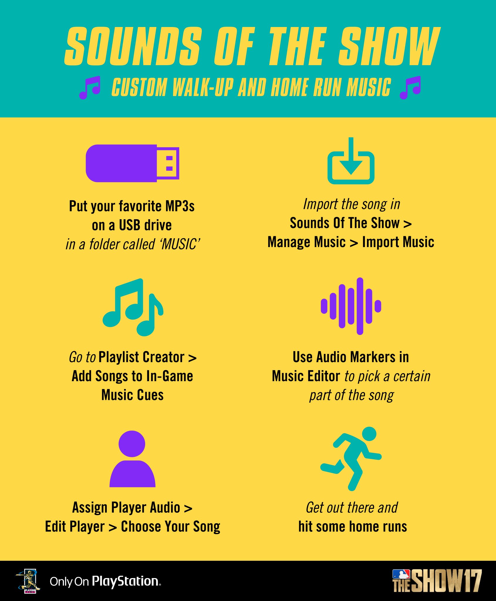 Nous vous le précisions d’ailleurs au sein de notre test le mois dernier, le nouveau-né de la licence MLB The Show permet encore une fois de customiser tout ce qui touche à la partie sonore. On peut notamment y importer n’importe quelle musique se trouvant sur son PC, histoire de faire résonner ses morceaux favoris dès lors que l’on réussit une action, voire pourquoi pas un home run dans le jeu. Toutefois, la manipulation à effectuer a beau être très simple, il semblerait que bon nombre de joueurs soit encore obligés de se renseigner au préalable sur le net afin de comprendre la marche à suivre.