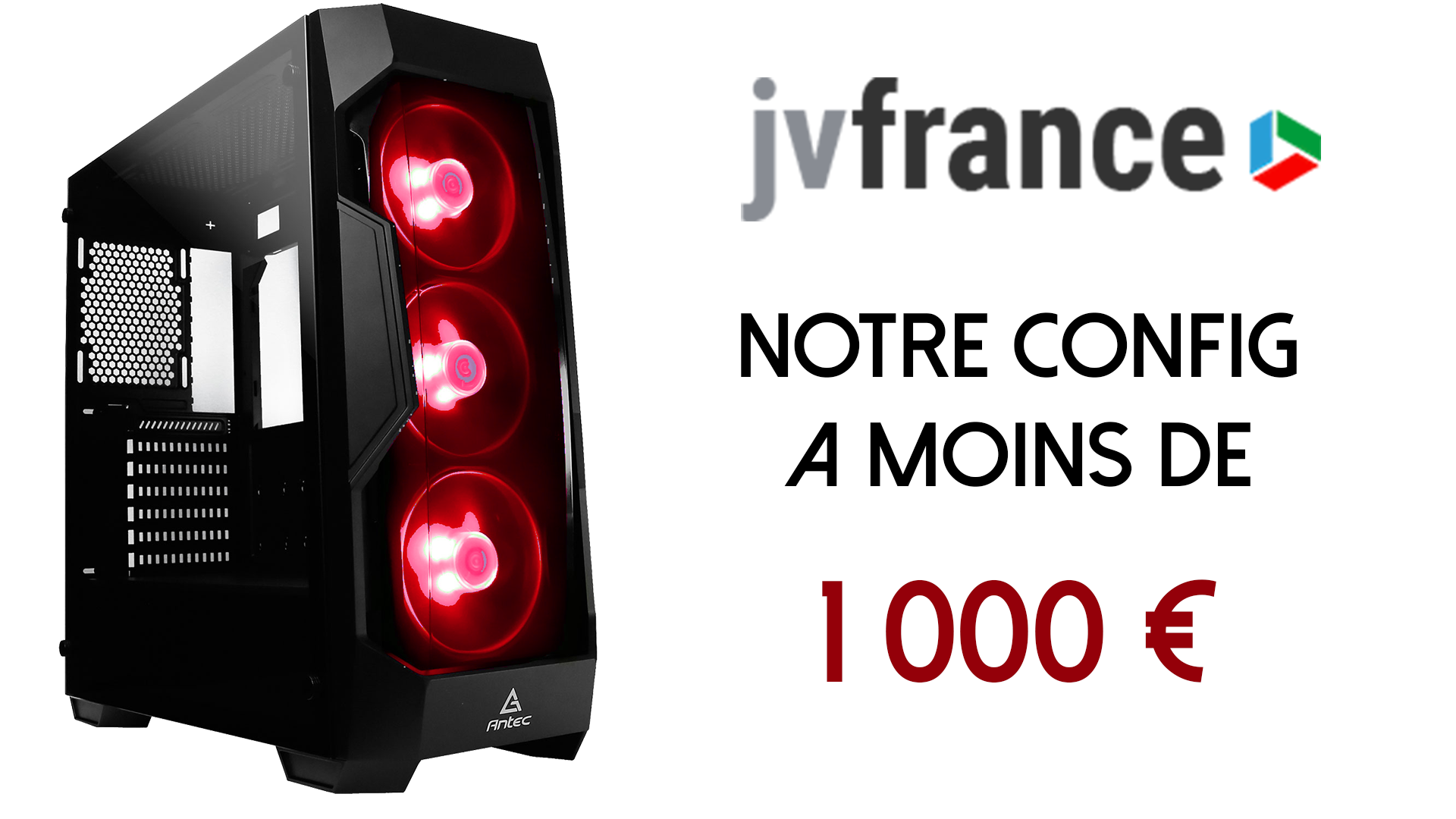 Pour 1000€, on peut avoir un build très puissant, si tant est qu’on économise sur les pièces les moins importantes. Ici, notre choix s’est porté sur un processeur, une carte graphique et de la mémoire de haute quaité, au détriment de la carte mère et du boîtier. Libre à vous d’équilibrer la config’ selon votre budget et vos envies. De plus ce build dépasse légèrement le budget (d’environ 60€), si vous souhaitez rester sous la barre des 1000€, ne prenez qu’une barrette de RAM au lieu des deux proposées.