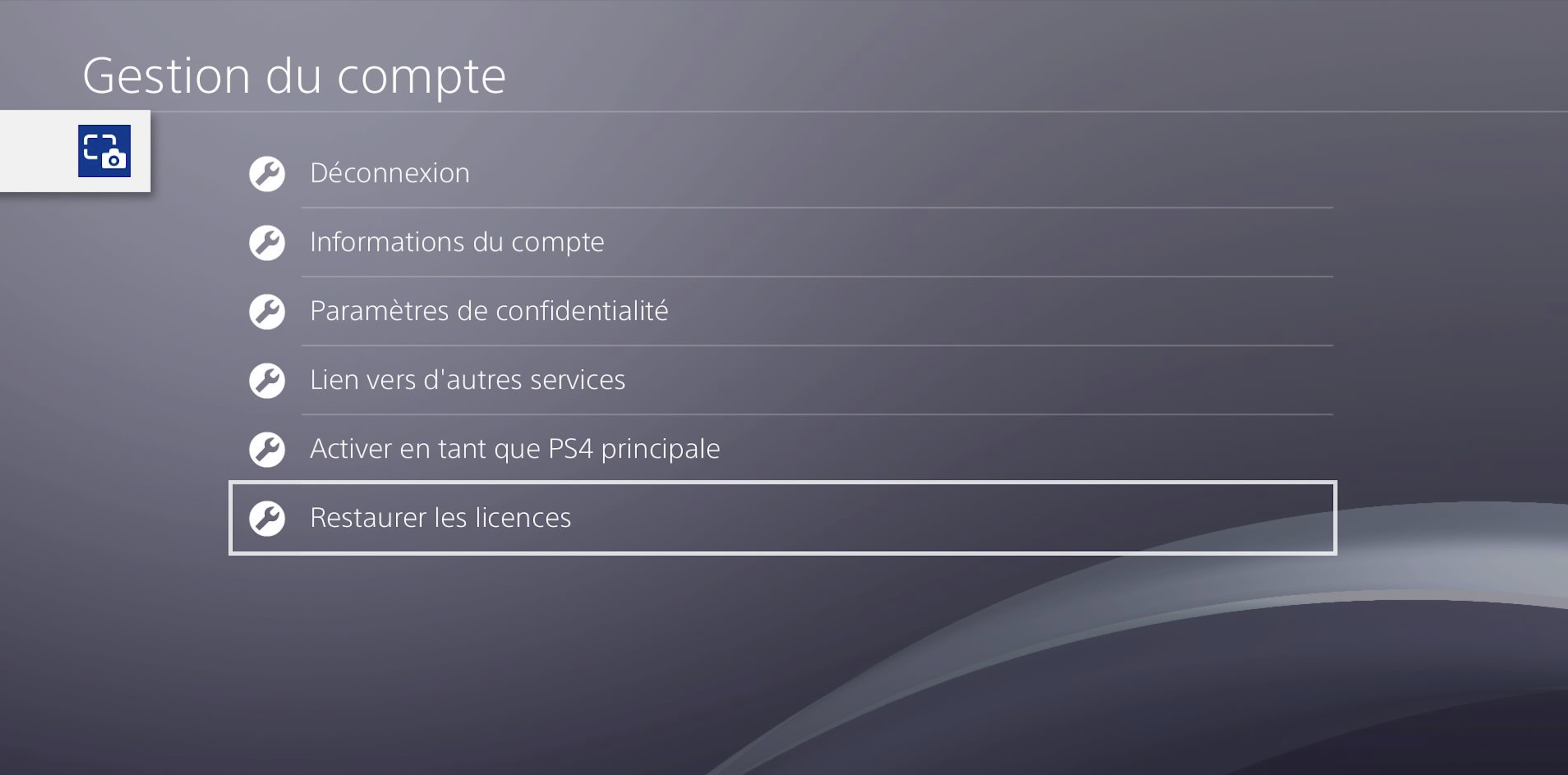 Une fois dans ce sous-menu, descendez vers le bas et sélectionnez [Restaurer les licences]. En fonction de la taille de votre bibliothèque vidéoludique et des titres numériques possédés, ce processus peut prendre un certain temps. Dans tous les cas, patientez jusqu’à ce que le système vérifie l’intégralité des licences en votre possession. Une fois terminé, retournez sur le jeu que vous vouliez lancer. Grâce à cette manipulation, il ne devrait plus y avoir de cadenas sur le jeu et vous pourrez ainsi le démarrer sans aucun souci.